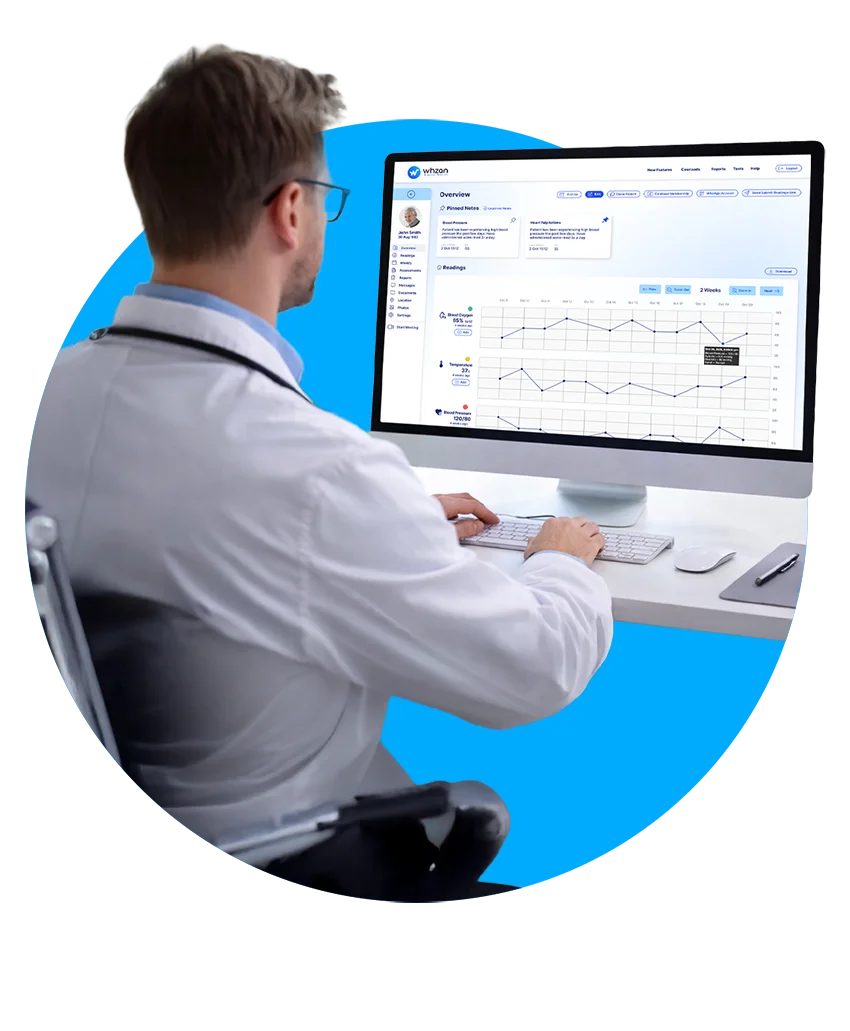 Whzan's Virtual Wards help keep patients at home by allowing clinicians to remotely monitor activity and vital signs, with an automated NEWS2. This empowers the NHS to deliver immediate and effective care, particularly in conditions such as Frailty, Heart Failure, Respiratory, learn more...